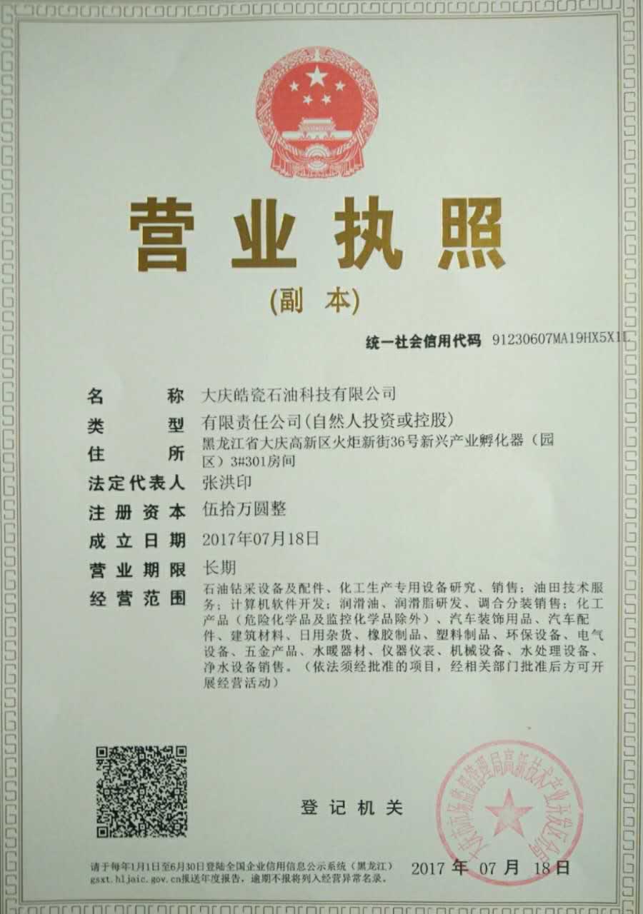 大慶皓瓷石油科技有限公司立足于中國(guó)石油基地,石油化工之都----大慶油田。是致力于石化新產(chǎn)品、新技術(shù)的研發(fā)、調(diào)配、銷(xiāo)售、服務(wù)于一體的科技型企業(yè)。